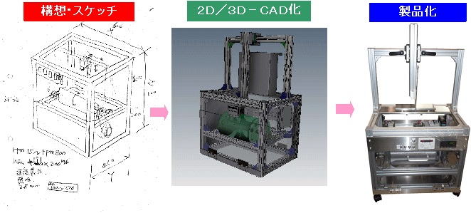 1.試作での活用(立体図を描ける事により構想設計時に検討が容易に行える。)