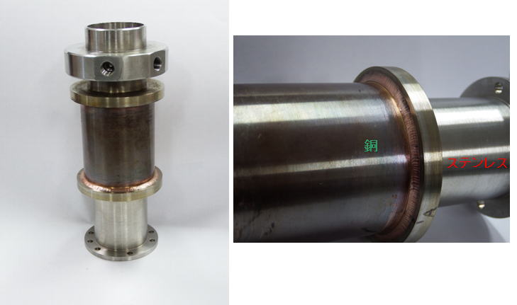 通常、融点も比重も異なる金属同士を溶接するにはろう付で接合するのが一般的ですが、弊社は非常に困難である金属同士を溶接する事に成功しています。
