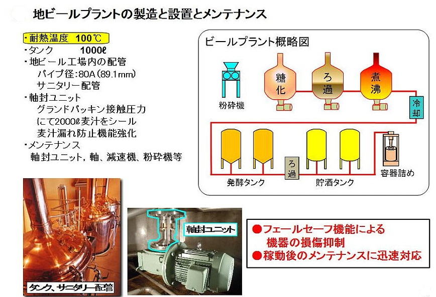 地ビールプラントは釜、タンク、撹拌ユニットなどプラントに係わる装置の設計製造から施工までを手がけています。