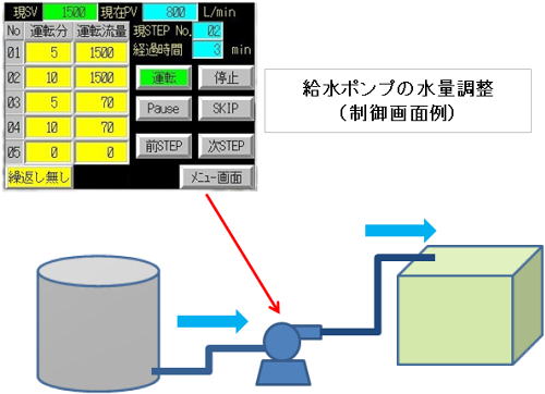 たとえば、サーボモータを用いた巻上装置や給水用ポンプの水量調整(フィードバック制御)を行う給水装置などの企画検討から装置仕様、制御回路やプログラム開発などご相談に応じます。