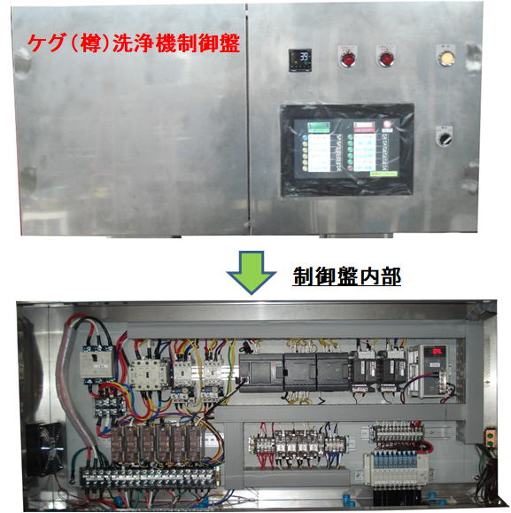 ★PLC制御のケグ(樽)洗浄機の制御盤とインバータ制御の溶剤攪拌機